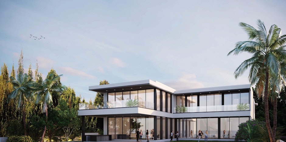 Sunset House, is a newly constructed 10,000 sq ft (929 sq m) home located on Sunset Island. This 6-bedroom luxury home is architecturally unique, and features glass walls and sliding doors facing the central courtyard and outdoor space maximising light and views.