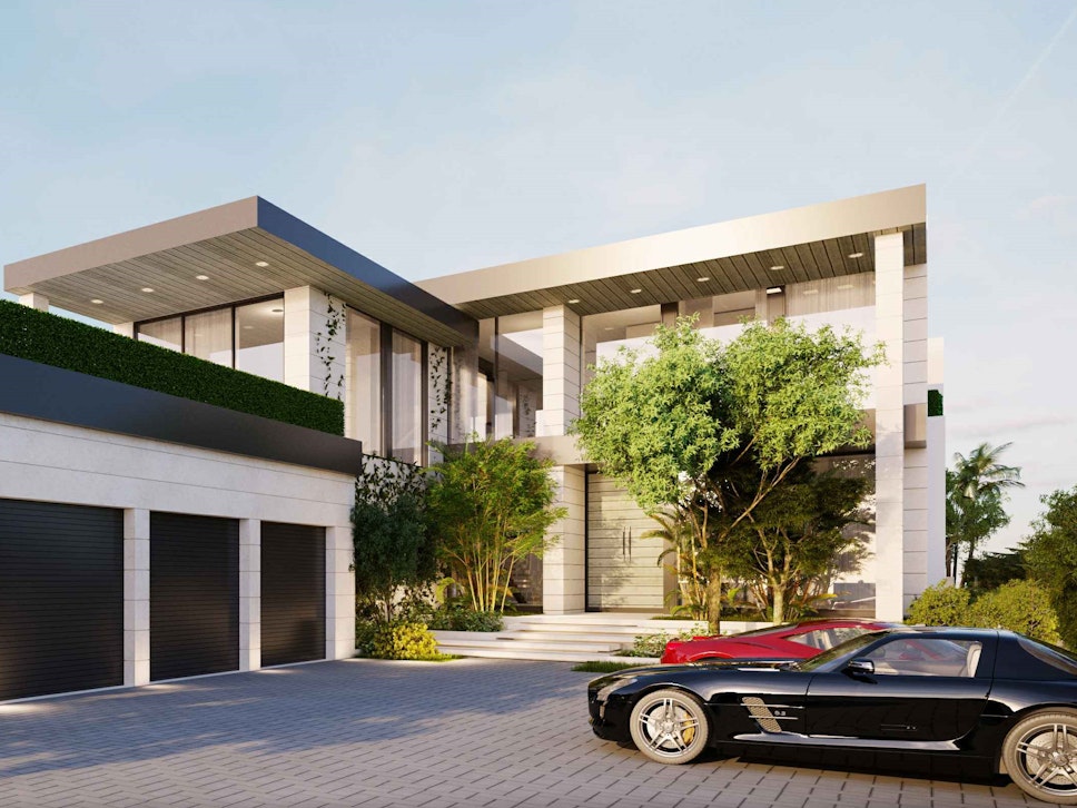 Sunset House, is a newly constructed 10,000 sq ft (929 sq m) home located on Sunset Island. This 6-bedroom luxury home is architecturally unique, and features glass walls and sliding doors facing the central courtyard and outdoor space maximising light and views.